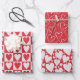 Three different patterns of red and white glitter hearts wrapping paper sheets. Great for Valentine's day, birthday for her, wedding and more.