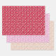 A set of wrapping paper sheets featuring a cute lace inspired tossed heart pattern design in red, pink and peach colours, perfect for your Valentine's Day gift wrapping needs.