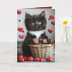 Valentine's Day Tuxedo Cat Red Hearts Card