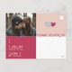 On this pleasing holiday postcard is "Happy Valentine's Day" in a fanciful font, in the 2023 Colour of the Year, Viva Magenta, on a field of hand-drawn hearts of complementary colours. The best part is on the back: Your photo (perhaps of you and someone you love) in the upper left, "I Love You" lower left in that fun font, two little overlapping hearts upper right (where the stamp goes), and space for addressing your loved one in the lower right. What could be more perfect? Send this postcard to the object of your affection and delight in what happens.