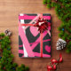 This wrapping paper is covered with hearts and random lines of red, pink, and white on a black background that makes the colours pop.