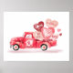 Valentine's Delivery Red Watercolor Truck & Hearts Poster