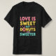 Celebrate Valentine's Day with a sweet twist! This adorable design features the message "Love is Sweet, but Doughnuts are Sweeter," surrounded by heartwarming pink sprinkles and charming hearts. Perfect for anyone who loves romance and indulging in delicious treats, this is a playful way to spread love and joy. Share the sweetness this Valentine's season!