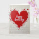 This striking card features a bold red heart at the center, rich in color and full of energy. The heart is decorated with expressive splatters and droplets, giving it a lively, artistic feel that adds motion and character. Across the heart, the words “happy hearts day” appear in flowing white script, creating a beautiful contrast against the deep red and adding warmth to the message. Behind it all is a textured, parchment-style background with faint gray lettering that feels timeless and thoughtful. The mix of bold color, expressive detail, and elegant lettering creates a powerful balance of emotion and style, making this card a meaningful way to share Valentine’s Day love and affection ❤️💌🍫.