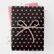 This set of wrapping paper sheets features a Valentine’s heart pattern on black and on white with an additional plain pink sheet of wrapping paper.