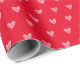 This wrapping paper features a Valentine’s heart pattern on a red background.