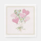 These personalized Valentine's Day paper luncheon paper napkins feature a balloon bouquet of heart shaped balloons in soft watercolor shades of pink and green with flowers.