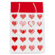 Paper gift bag is shown in red and white with a Valentine's hearts print.