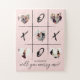 Pop the question on valentine's day with our fun and trendy, will you marry me? custom 5 photo layout jigsaw puzzle. Our design features a fun tic tac toe design with heart shapes for you to add your own images. "Will you marry me?" is designed in a trendy black typographic design. Customised with the recipient's name for a truly fun and unique valentine marriage proposal.