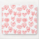 This mouse pad has a mid-century modern Valentine’s design of scattered red heart mazes on a field of white.