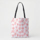 This tote bag has a mid-century modern Valentine’s design of scattered red heart mazes on a field of white.