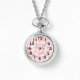 This women's watch has a mid-century modern Valentine’s design of scattered red heart mazes on a field of white.