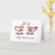 Cute Valentine's themed card featuring an illustration of two teacups decorated with hearts and polka dots. "Happy Valentine's Day" message beneath.