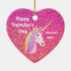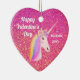 Valentines Unicorn Pink Glitter Personalised Ceramic Tree Decoration