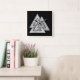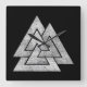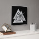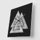 The valknut, Old Norse valr, "slain warriors" and knut, "knot" has three interlocked triangles. This viking symbol has been illustrated in white, with a distressed look on a black background. This was a part of Norse mythology and used by Vikings and Norse warriors.