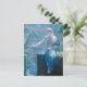 This postcard features 'The Valkyrie's Vigil' by British painter, Edward Robert Hughes (1832–1908). The Norse war goddess is depicted in an ethereal, cool color schemed painting, barefoot, wearing a sheer off-the-shoulder gown, and softly lit from above in a fairy-like way. Her martial aspects are de-emphasized, giving her the appearance of gentleness and softness, despite being the opposite.