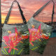 This large shopping tote not only has a gorgeous design with pink frangipani flowers on each side, it is soft, roomy and has a wide adjustable strap that fits across the body. Excellent printing. True to the picture.