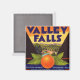 Display a piece of vintage art on a 2 inch square magnet. This magnet is adorned with the Valley Falls Brand orange crate label with a large image of an orange and leaves in front of an orange grove landscape. The design has been enlarged to fill the entire print area to stylise the label design. If you wish to see the whole label, click "Customise It!" and use the controls to size the art to your liking. A little history of the Fruit Crate Label From around 1880 to 1940, the western United States experienced decades of intense competition among fruit growers to create the most colourful, artistic and eye catching paper crate labels used to identify their citrus fruit crates. German immigrants combined their printing and illustration skills to create fruit crate commercial art unsurpassed anywhere in the world. German Americans for decades had been using lithography to create labels for wine bottles. California orange growers and shippers adapted the wine label concept to a larger format and fruit crate labels were born. Originally, the process used to create the labels was and is known as stone lithography, where the illustration was etched directly on a piece of limestone; a process requiring great talent and skill. Fruit crate labels from the 1880's through the 1920's were mostly produced by this stone lithographic process. More modern printing techniques were used after this period until the 1940's and 1950's when wooden crates and labels were mostly replaced with preprinted cardboard boxes. Today, fruit crate labels are highly collectable and recognised as an outstanding example of commercial art and illustration from a bygone era.