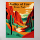 This poster features a stunning view of Valley of Fire State Park, located in Nevada. The park is known for its otherworldly rock formations, which were created by millions of years of wind and water erosion. The poster features a close-up of a particularly impressive rock formation, known as the Fire Wave. The Fire Wave is a series of wavy, orange-red sandstone layers that are stacked on top of each other. The colours of the Fire Wave are so vibrant that they almost seem to glow. The poster also features a desert landscape in the background, complete with cacti, Joshua trees, and other desert plants.