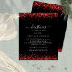 A great value alternative on a smaller size 4.5 x 5.6” supplied WITHOUT envelopes (A6 are the closes size to fit. Paper Glam Red Glitter Christmas Party Black Invite. A border of christmassy red faux glitter is on each side top and bottom with a classic black background, and Christmas is in a handwriting style script in white. Easily personalise the text to your own details. You can also change the text and background colours via the customise further option if you wish.