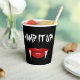 "Vamp it up!" fun slogan Halloween cups with big bright red lips and fangs image.