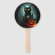 Vampire Cat and Wizard Pumpkin Halloween Surreal Hand Fan