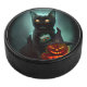 Vampire Cat and Wizard Pumpkin Halloween Surreal Hockey Puck