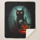 Vampire Cat and Wizard Pumpkin Halloween Surreal Sherpa Blanket