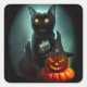 Vampire Cat and Wizard Pumpkin Halloween Surreal Square Sticker