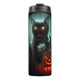 Vampire Cat and Wizard Pumpkin Halloween Surreal Thermal Tumbler