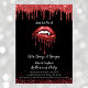 Editable Halloween vampire adult party invitation. Design features red lips dripping with blood and vampire fangs on a black background! Glamourous red glitter dripping, red glitter and sparkles frame the card. Personalise the text and change the font style and colour to suit. The glitter is not "actual real" glitter but a printed effect.
