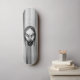 A black and white vampire skull.