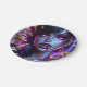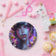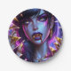 Pretty purple vampire with gold fangs and eyes Halloween party plates.