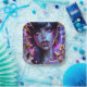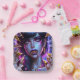 Pretty purple vampire with gold fangs and eyes Halloween party plates.