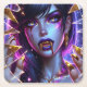 Vampire with Gold Eyes and Teeth Halloween Square Paper Coaster