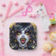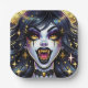 Halloween party paper plates.. Female vampire with gold eyes and teeth and sparkles in her hair. Gold fangs, pale skin. Cool for Halloween or anyone who loves vampires.