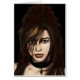 A digital painting of a vampiress with colourful brown hair and an arrow pendant chocker.