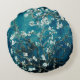 Van Gogh Almond Blossoms Dark Teal Round Cushion