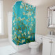 Fans of visiting fine art galleries or fans of Vincent Van Gogh and his paintings may enjoy this turquoise blue shower curtain featuring Van Gogh's famous masterpiece: "Branches of an Almond Tree in Blossom". Even for non arty people, the floral blooms that have a hint of a Japanese style to them, may appeal to anyone on the lookout for flower shower curtains or those featuring peaceful, calm, spring nature scenes.