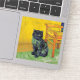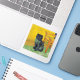 Sticker featuring a black cat in the style of Van Gogh! This black kitty sits by a chair upon a green floor against a background of Starry Night decoration. A fabulous gift for cat lovers and Dutch art collectors!