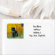 Return Address Labels featuring a black cat in the style of Van Gogh! This black kitty sits by a chair upon a green floor against a background of Starry Night decoration. A fabulous gift for cat lovers and Dutch art collectors!