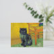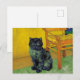 Poscard featuring a black cat in the style of Van Gogh! This black kitty sits by a chair upon a green floor against a background of Starry Night decoration. A fabulous gift for cat lovers and Dutch art collectors!