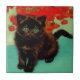 Van Gogh Black Cat Red Flowers Tile