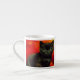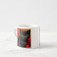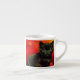 Espresso Cup featuring a black kitten in the style of Vincent van Gogh! This fluffy kitty poses with red flowers. The purr-fect gift for cat lovers and Dutch art collectors!