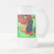 Frosted Glass Beer Mug featuring a black kitten in the style of Van Gogh! A cute kitty sits beside a vase with red flowers. A green wall and floor give a spring ambience. A fantastic gift for cat lovers and Dutch art collectors!