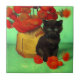 Van Gogh Black Kitten Red Flowers Tile