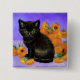 Van Gogh Black Kitten with Sunflowers 15 Cm Square Badge