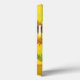 Artistic beautiful floral vintage fine art painting featuring fifteen sunflowers in a vase against a bright yellow background.