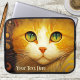 Laptop sleeve featuring a colourful painting of a cute kitty in van Gogh style. The text is optional.
