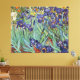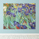 Vincent Van Gogh Irises at Saint Remy - Irises by Vincent Van Gogh is a wonderful impressionistic painting by one of the master impressionism artists of all time. The iris garden is swirling with colour and emotion, as the purple irises flow up from their blue green stems and leaves. There are some orange flowers in the background, in back of the purple irises. Greens, blues, purples, and oranges are vibrant in Van Gogh's masterpiece. Vincent van Gogh pained Irises in 1889. He painted the flowers in Southern France, during his first month in Saint-Rémy. He was encouraged to paint during his stay, and Van Gogh painted the iris gardens that were on the hospital grounds. He wrote to his brother Theo, "When you receive the canvases I have done in the garden, you will see I am not too melancholy here.